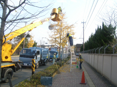 善通寺大野原線自衛隊前イチョウ剪定作業中 |