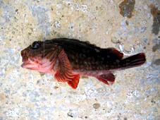 | 4匹目は15センチ程の小メジナ。これはリリース。 その後、深そうな隙間を見つけ、波に乗せて流し込むように仕掛けを落とすと、コツコツとアタリ。しかし、それっきりだ。 仕掛けを上げると、餌がなくなっている。すぐに、餌を付け直し再投入。すると、コツコツ、ググーンと強烈な引き。これは良型のメバルか、と思ったが、上がってきたのは多分27cm以上あったろうと思われる良型メジナ。家で測ると、26.5cmであったが...。 まだ、いるかもしれないと思い、同じポイントを攻めると、案の定アタリ。かなり重い。 根にもぐられないように強引にリールを巻く...と、あれれー、急に軽くなってしまった。道糸が岩に擦れ切れたのだ。 すぐに仕掛けを作り直し、再投入。今度は、いきなり、グイーンと竿先が引き込まれた。またもやメジナかと思ったが、上がってきたのは、びっくり、タカノハダイであった。しかし、丸セイゴ14号に3号のハリスで明るいうちからメジナやタカノハダイが釣れるとは...。 その後、場所を移動し一箇所でカサゴ3匹を追釣した。 時計を見ると2時を過ぎている。まだまだ釣れそうであったが、今日はこれで納竿とした。
