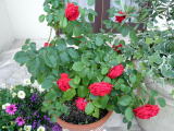 | 鉢植えのバラ | 駐車場側の入り口 | フランスで購入した小物です | ||||