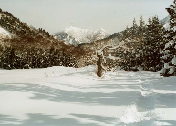 帰りは昨日の足跡がありずいぶん楽に歩けました。初男さんの話では「3月にもう一度落としに来るしかねーべ」。とのこと。