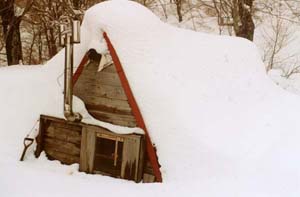 この雪を掘り起こしやっと中に入れた。もう黄昏時でした。
