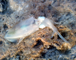 さっきのにいちゃんはというと、問答無用で目の前にエギを投げ込んだので黙っておとなしく見てました。意外とお利口さん。今度ひとこと「隣いいですか?」と声かけてれば気持ちよく譲ってあげたのに。大人げないけど教育、教育。