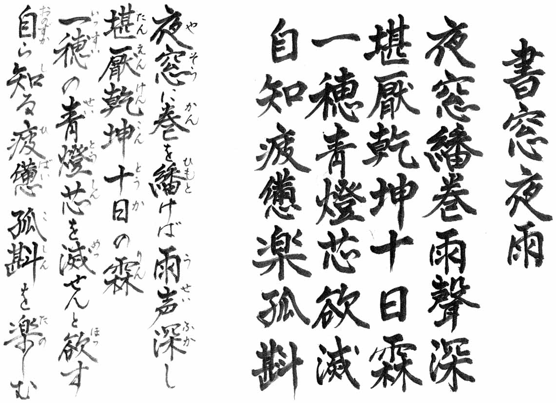 (大意) 夜更けに読書にふけっていると窓の外では雨音が激しい もう十日も降り続いておりうんざりした気分に浸っている 手元の灯りの芯は段々と短くなってきた 疲れが出てきたので独りで気分転換にちびりちびりと飲み始めた 漢詩の目次に戻る