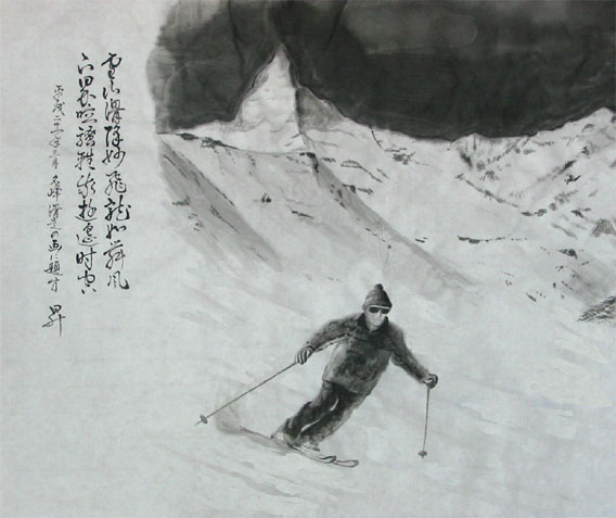 飛龍 : 空を舞う龍 名峰の大雪原でスキーをする様子に見立てる