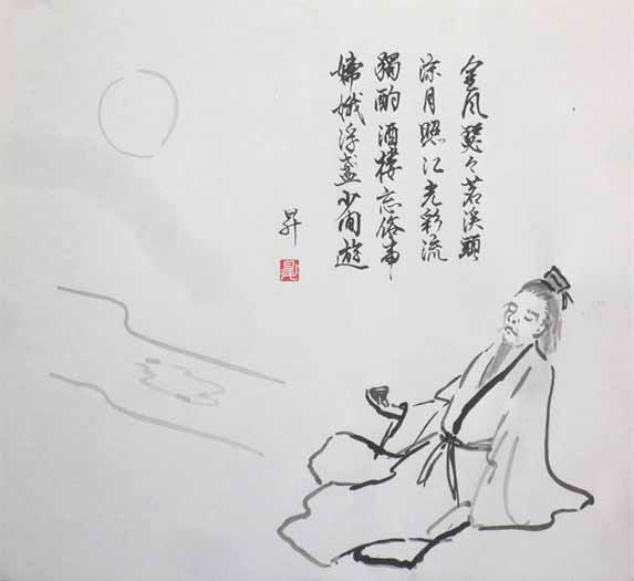 御茶ノ水界隈には秋風が吹き渡っている 月が外堀の水に映って明るく輝いている 私は一人酒場で、月を眺めながら酒を飲んでいる 私の杯には月が映って、あたかも月の女神が杯の中で しばしの遊びを楽しんでいるようだ 漢詩の目次に戻る