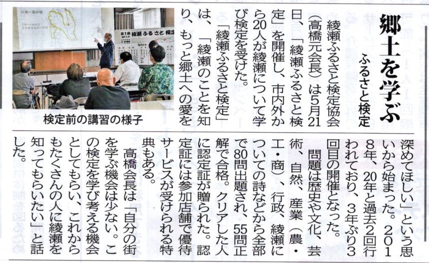 2017年 5月 綾瀬ふるさと検定協会設立 (代表 髙橋 元)