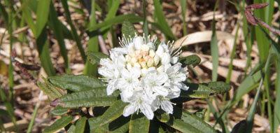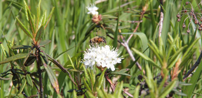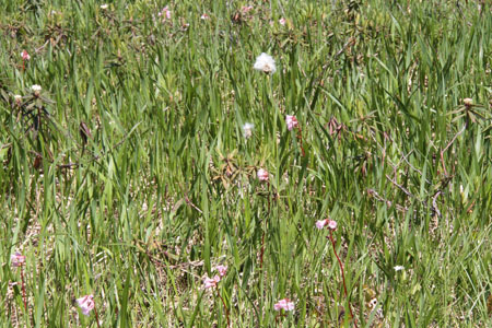 | ↑ ヨシ原を掻き分ける水路 ↑(上段)イソツツジ(下段)ワタスゲとツツジ |