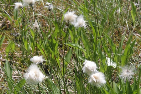 | ↑ ワタスゲがレンゲツツジを眺めています |