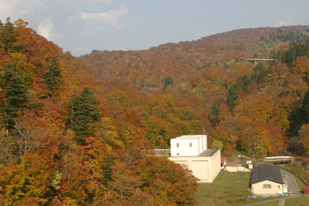 山岳道路は紅葉一色