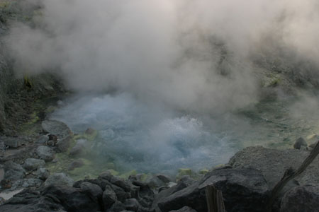 噴出した硫黄が怪しげな姿で