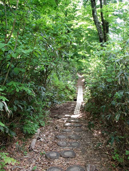 | 残雪や緑が鮮やかに映えてる散策道 |