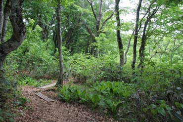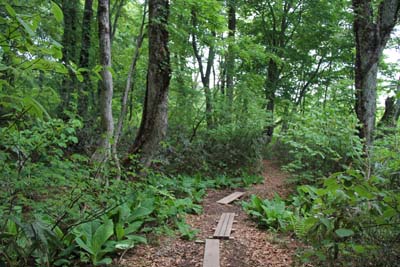 | ↑ 湿原へ通じる鶯川林道-徒歩片道約1時間 |