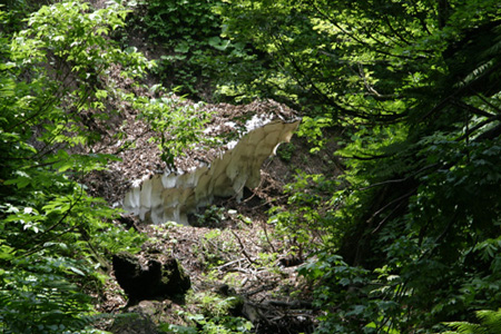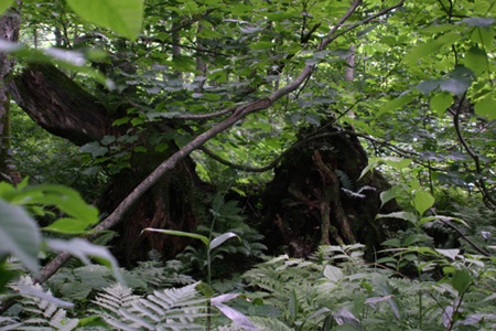 名勝沼にほど近い処にカツラの巨大な根株(切り株?)を見つけた、根っこの内部は朽ちて