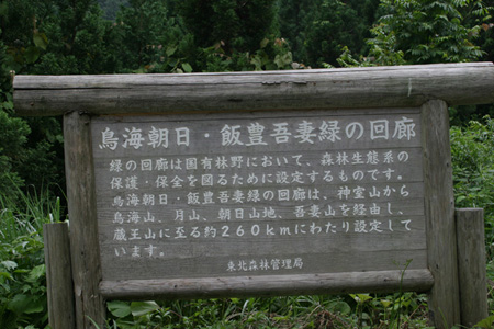 | 「鳥海朝日・飯豊吾妻緑の回廊」の案内板 |