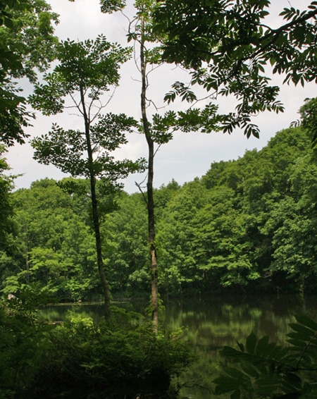 女甑山に近い、名勝沼は周囲を原生林に覆わ