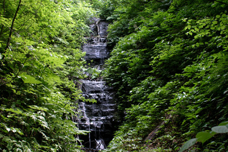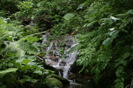 | 小さな沢には滝もどきの滝が多くありました | 岩石を幾重にも積み重ねたような滝 |