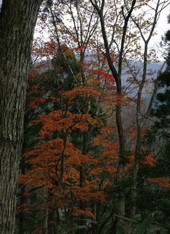 | 「仁別自然休養林」の中に展望台があるこ とを初めて知りました、尾根まで繁茂した 天然杉の展望台とは・はたして眺望は?。 展望台まではきつい坂道が続く、ようやく 辿り着いた展望台は眺望がよくなかった。 |
