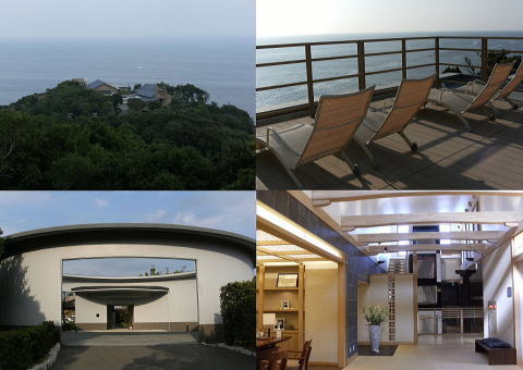 <御宿ジ・アース> 嵐を観る宿「御宿ジ・アース」(鳥羽:龍の栖温泉)。岬の突端に5万4千坪の敷地(原生林)を有し、海と空と大地(地球)が体感できます。オールスイート16室。館内設計は石井建築事務所。(2012年6月23日) |