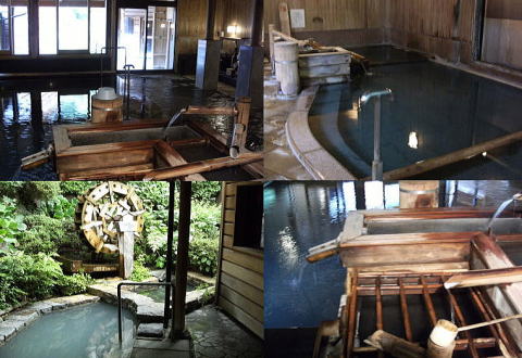 <野沢温泉さかや> 野沢温泉の老舗旅館さかやの温泉は自然湧出、源泉かけ流し。源泉を湯船に注ぐ際、複数の竹に通し、湯の量や温度を調節。加水をせずに生源泉のなめらかな肌ざわりが楽しめます。泉質は弱アルカリ硫黄泉。 (2012年7月14日) |