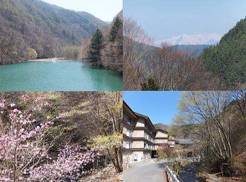 <明神館・さんぽ道> 五月晴れにて、明神館のさんぼ道(扉ダムコース)を散策。北アルプスの常念岳も望めます。 (2013年5月5日)61 |