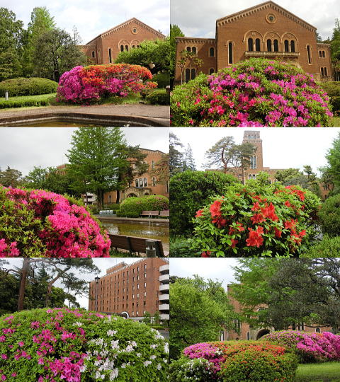雨あがりの国立キャンパスにカラフルな「ツツジの風景」が広がります♪・・(2019年5月2日) |