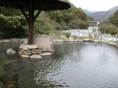 <奥飛騨温泉> 奥飛騨温泉の穂高荘山のホテルの露天風呂。晴れた日には |