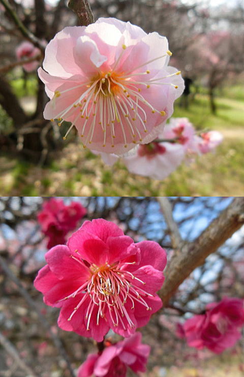 紅=「八重寒紅」、白=「冬至梅」&濃紅=「大盃」も・・ |