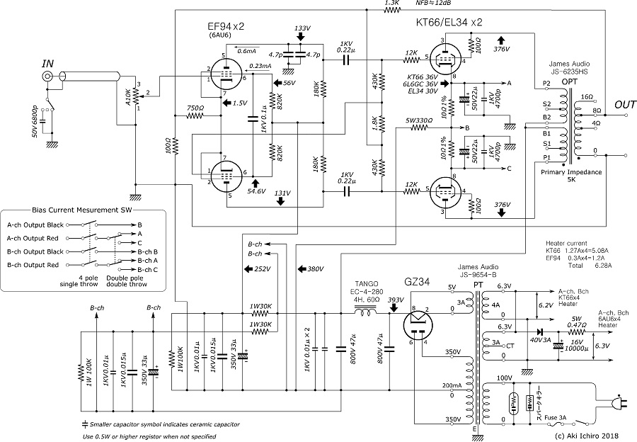 KT66 3結 Quad-II´型プッシュプル・パワーアンプ回路図