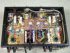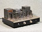 「ラジオ技術」誌1997年12月号に掲載していただいたものです。このアンプは性能も姿も私のたいへんなお気に入りです。NFBなしの状態でも非常に広帯域でクセがなく、良い特性が出ています。このように裸の状態でも素性のよいアンプですが、発表時に3dBだったNFBはその後6dBに増やし、初段EF86の動作点を変更してあります。オールマイティに使えるバランスの取れたサウンドです。出力段は内部抵抗の小さい3極管接続で、しかもパラレルにより内部抵抗が実質半分になっているため、プッシュとプルのバランスに敏感です。EL84を交換する場合は厳密なペア組みが必要です。