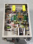 「ラジオ技術」誌1996年10月号に掲載していただいたアンプです。発表当初はUL接続でしたが、現在は音が素直という結果から3極管接続になっています。カソードNFに入る交流信号をバイパスするスイッチを追加しましたので、カソードNFのあり、なしを音質面から選べるようになっています。私が聴く限りではカソードNFありのほうがリアリティが出てくるように感じます。写真のKT88は中国製のソックリさんです。本物の音がどんなものかは知りませんが、この中国製は中低域の腰がしっかりした解像感のよいクリアな音が出ます。東芝製の6FQ7は、日本人好みのハイファイ感に寄与しています。ハーモニクスや残響音をよく再生するアンプに仕上がりました。出力管は自己バイアスですが、プッシュとプルのバランスを調整できるようになっています。この調整はこだわりたいときにのみ利用すればよく、ペア球を使用する場合はおおざっぱに真中あたりに合わせておいてもかまいません。何の変哲もないプッシュプルですが、実用品として十分及第点を取れるのではないかと思います。