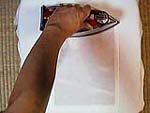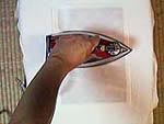 くれぐれも、アイロンプリントした画像部分に直接アイロンをかけないようにしてください。直接アイロンをかければ、アイロンプリント部分が熱で溶けて印刷がにじんでしまいます。 さらにもう一枚続けてアイロンプリント用紙の熱転写を行う場合は、アイロンの設定温度が低温120度(ポリウレタン、アクリル用の温度)に降下してから、作業を繰り返すことを忘れないでください。