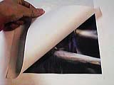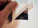 下図の左側のように、奇麗に剥がれるときは、アイロンプリント用紙に印刷されている画像部分のまわりの余白部分が、透明なシートとして布地に付着している様子が確認できます。 下図の右側は、熱圧着がうまくできていないために、布地が引っぱられて失敗している様子です。