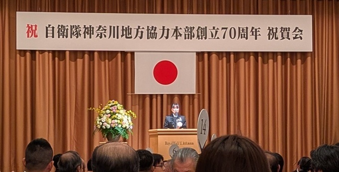 ---神奈川県自衛隊協力本部創設70周年記念行事開催。令和7年11月7日 ロイヤルホールヨコハマにて、代々の地域所長、隊友会及び家族会の方々が集まり祝いました。現大谷所長の挨拶に始まり、国会議員、地方首長の祝辞に続き、鏡割りで盛り上がりました。花を添えたのはフルートによる国歌が自衛隊の記念行事には何とも重厚な雰囲気を醸し出します。高市政権になって上手く回り始めている感じがしてます。今は高市総理の健康が唯一の心配事だ。自衛隊よ幸あれ!!