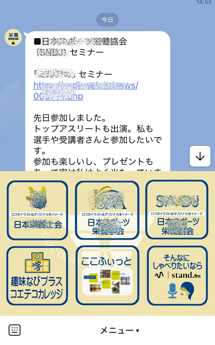 各種セミナーお誘い、参加報告、栄養トーク配信案内など流します。