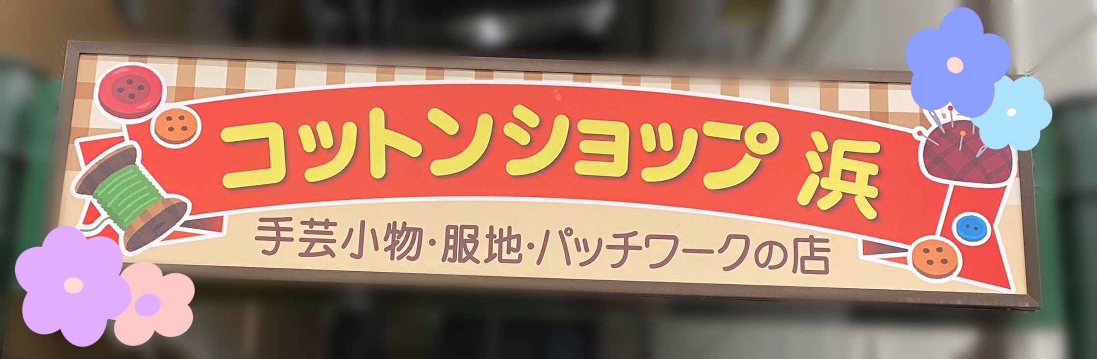 コットンショップ浜では、パッチワーク材料・手芸用品販売の他、 パッチワーク教室の開講なども行っています。(公益財団法人日本手芸普及協会認定教室) 自転車・バイクでお越しのお客様は店前に駐輪スペースがございます。