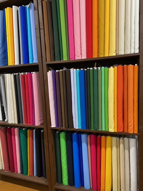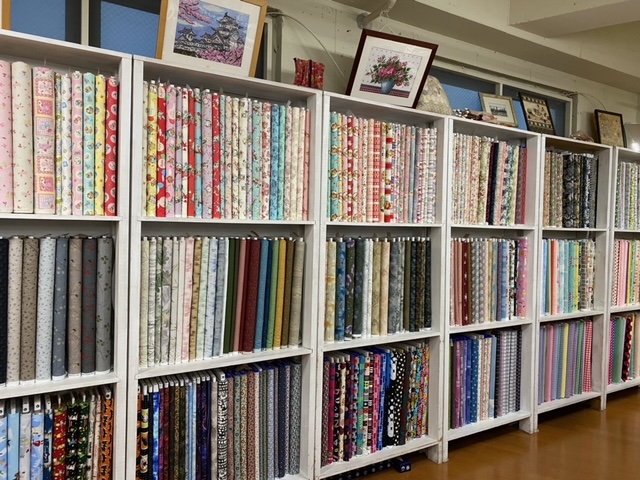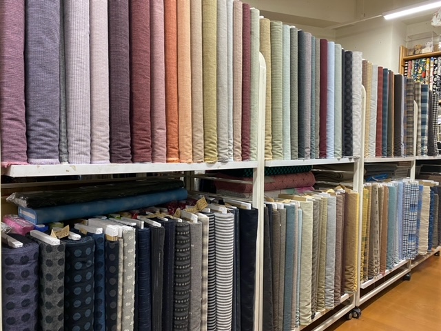 | パッチワークに使う国産の先染め布やプリント布を多数揃えています。 定番色はもちろん、他では手に入りにくい色柄も充実。 |