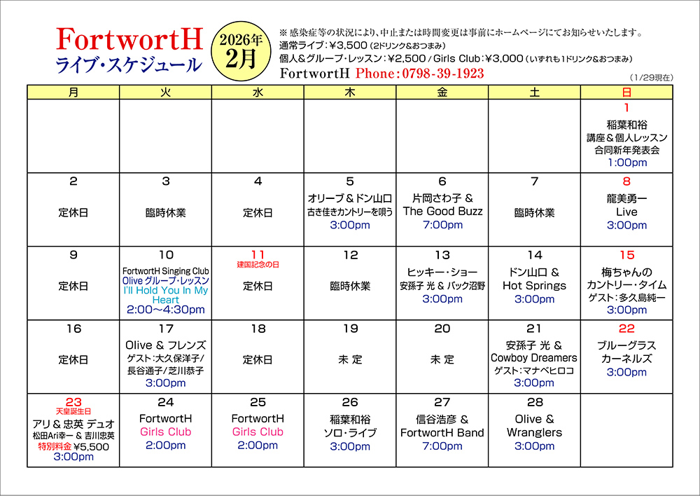 カントリー&ウェスタンシンガー福原照晃、カントリーライブハウスFortwortHの情報サイト
