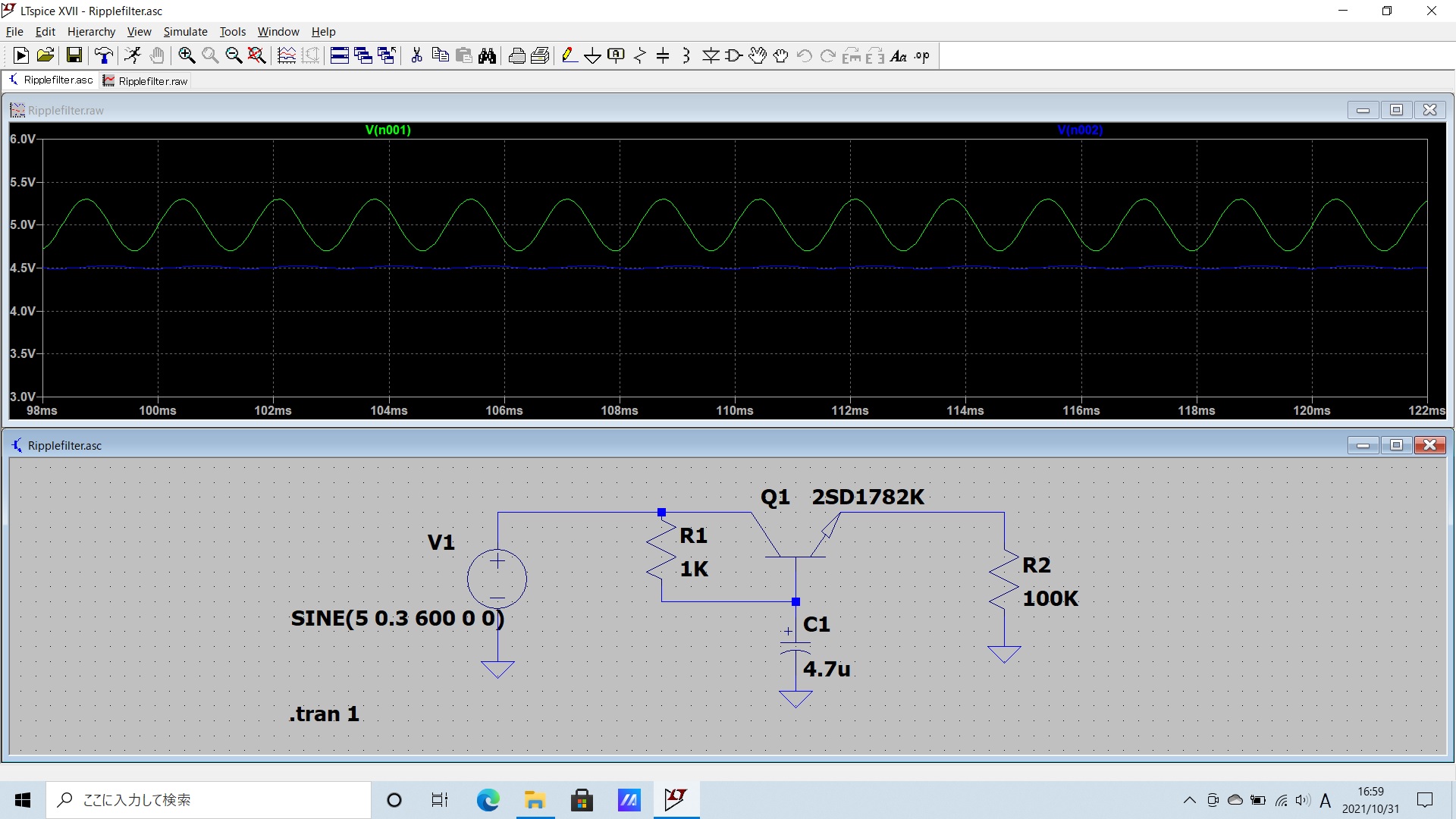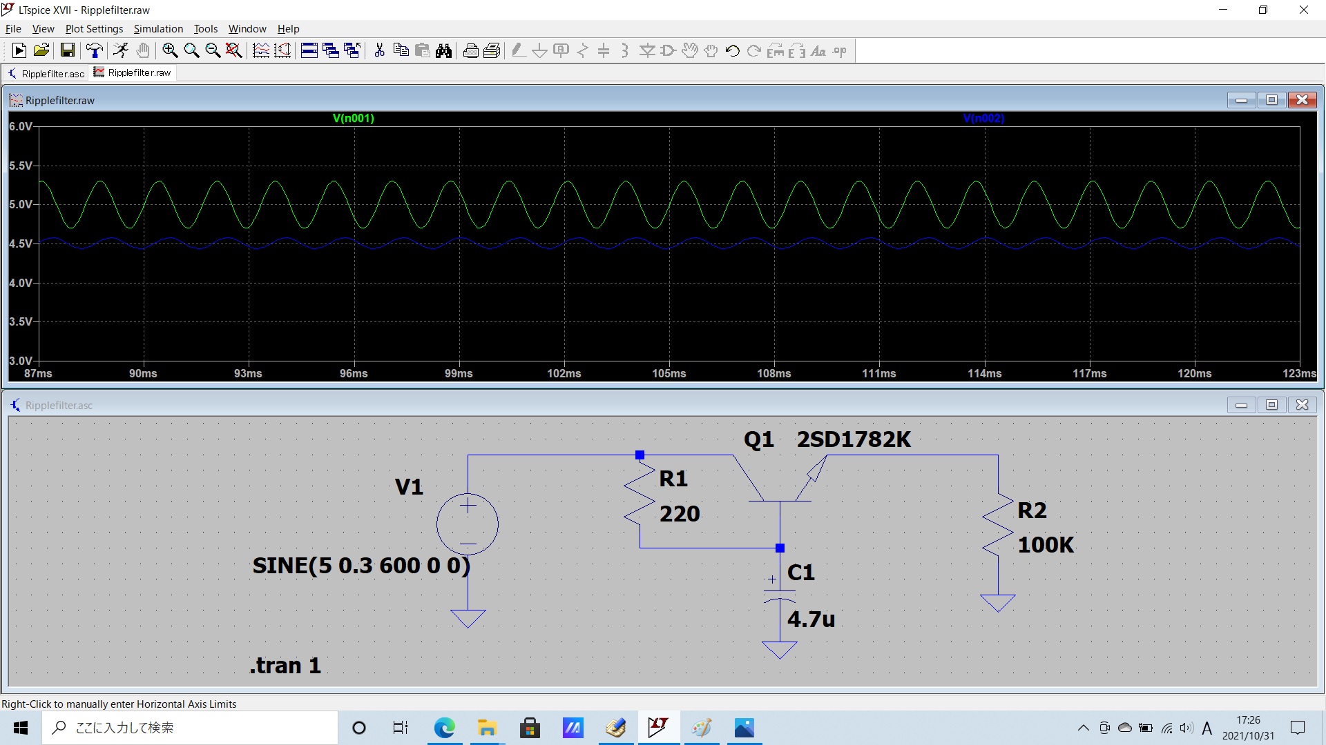 リップルフィルタをLTspiceでシミュレーション