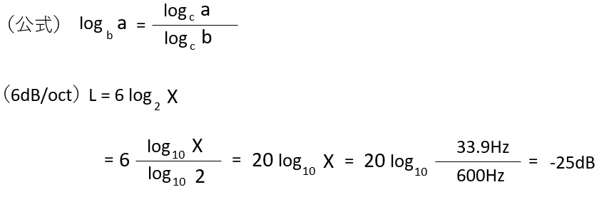 カットオフ周波数fcより、対象のリップルがどれくらい減衰するのか計算します。
