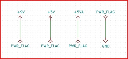 ※Kicadでは下記のようにPWR_FLAGと接続しないとエラーになる