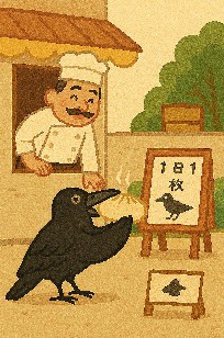 From then on, Kuro became a local legend. Children left coins for him, hoping to see the famous bun-buying crow. And Kuro, proud and puffed, never missed his daily treat.