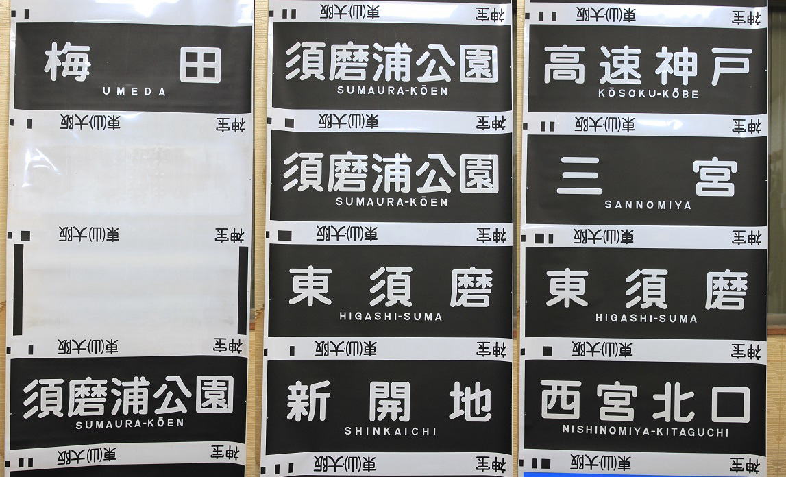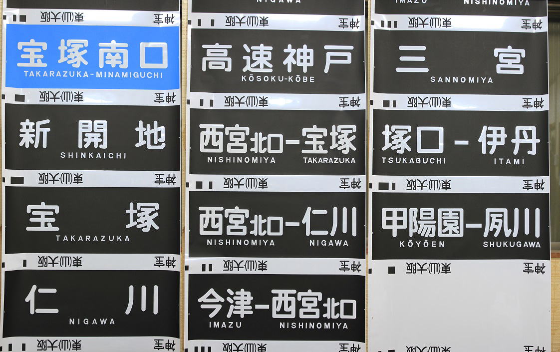 当初は「西宮北口ー宝塚南口」の両駅が表示されていたが92年頃から「宝塚南口」を単体で表示し誤乗車防止の為に青色で印刷されました。