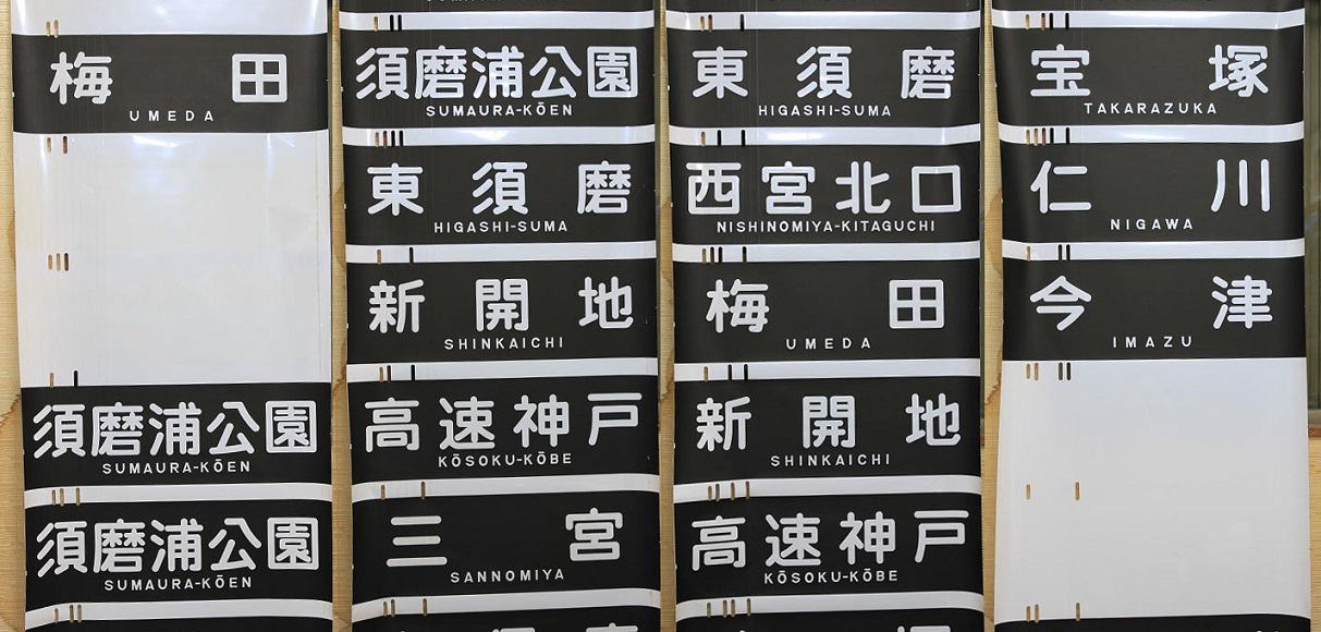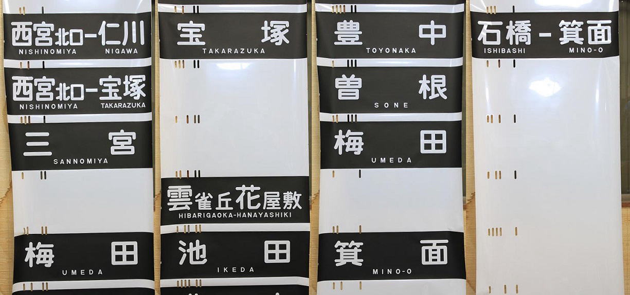 86年から英文字が入るようになった。神戸宝塚線用のB式行先幕。今津線は南北に分断された後ですがなぜか今津が入っています。