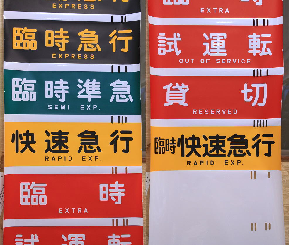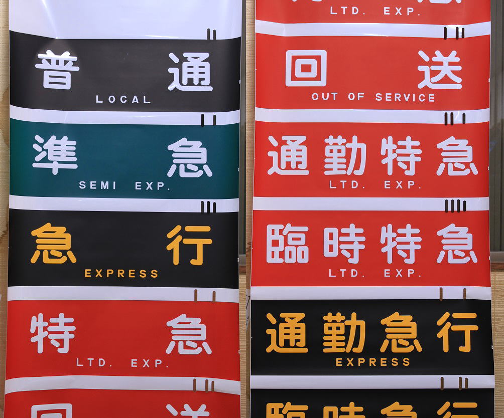 86年より使用されいる神戸線・宝塚線・京都線共通の種別幕。英文字が入り快速急行の表示が加わっている。