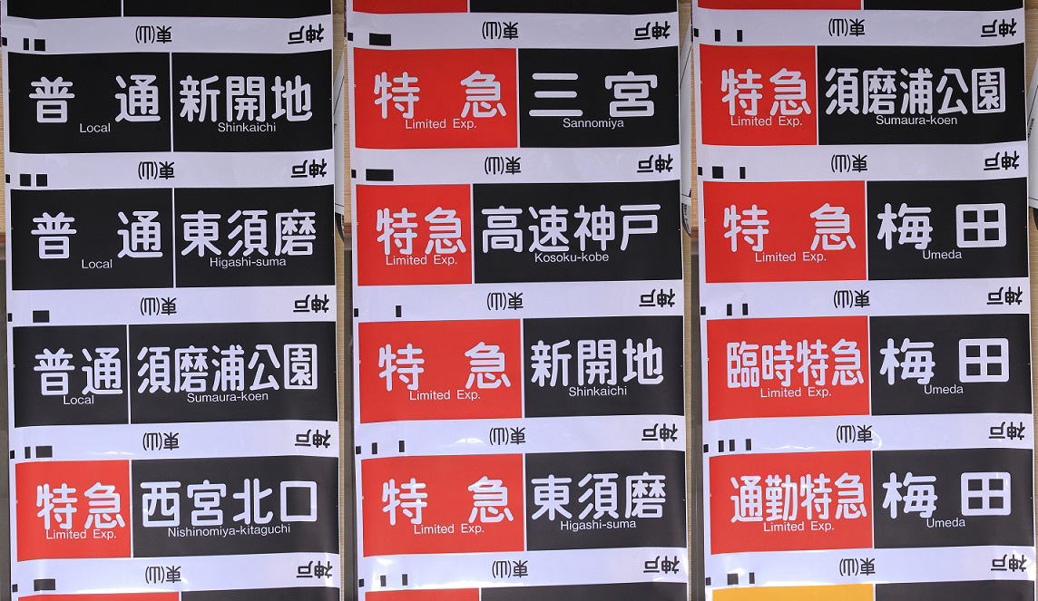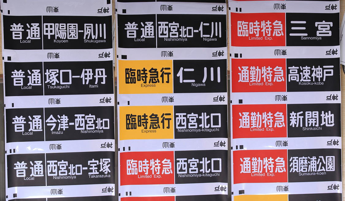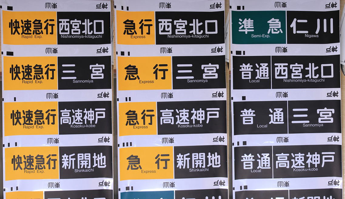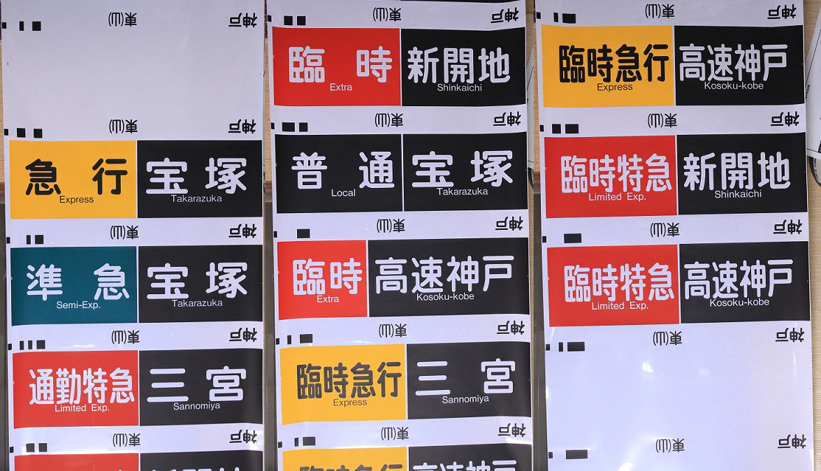 これまで神戸・宝塚線共用の物だったが94年に宝塚線用が分離し、続いて95年には神戸線用も出来ました。 漢字書体はそのままに英文字書体が変更されて頭文字以外が小文字になっており47番から63番まで内容が一新されている。23番の「普通仁川」が「準急仁川」に変更されている。