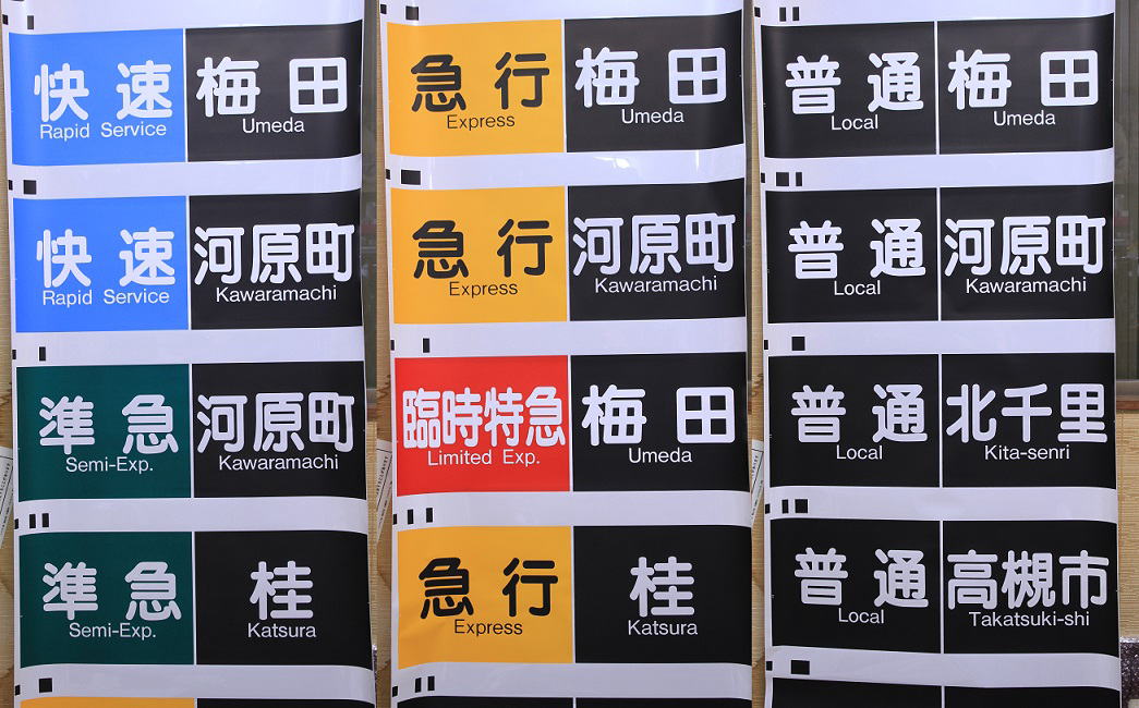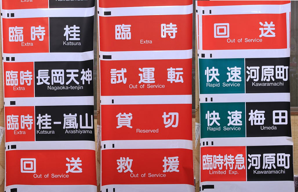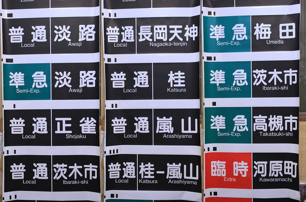 従来は2番から5番まで臨時急行表示が入っていたが、臨時急行自体が2001年より運転が無くなり表示も完全に無くしこの度青色に変更した快速表示とダイヤ乱れ時に対応できるよう準急桂と使用機会が皆無だった15番「普通相川」を消去して新たに「準急淡路」が追加された。
