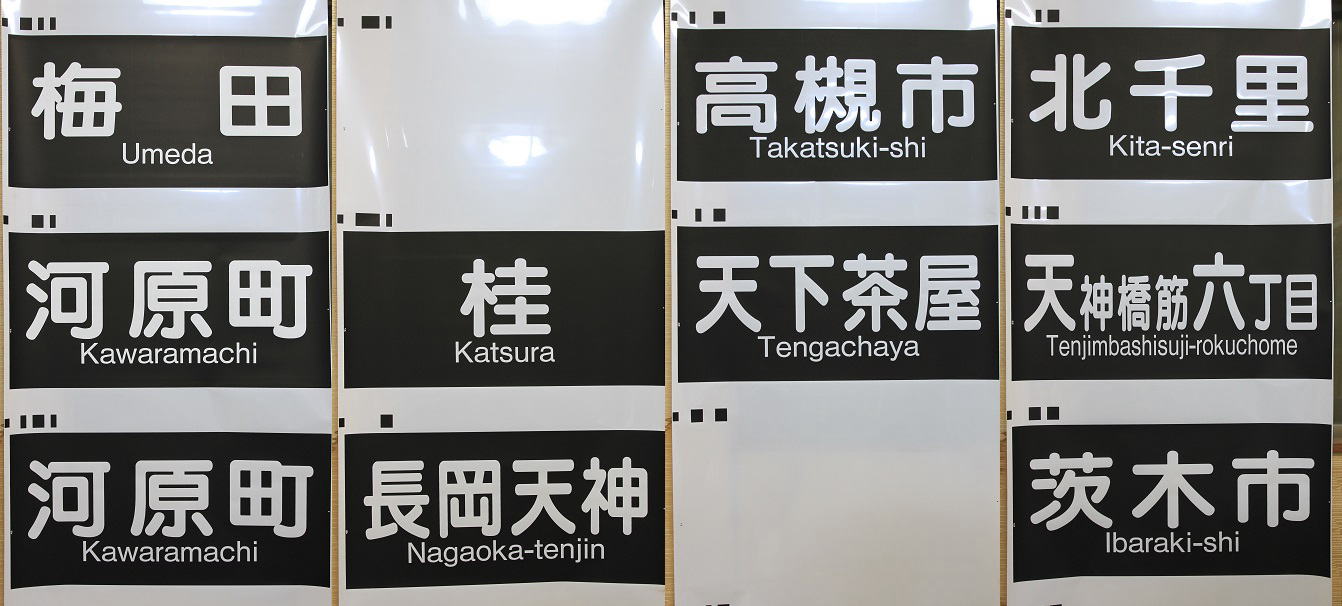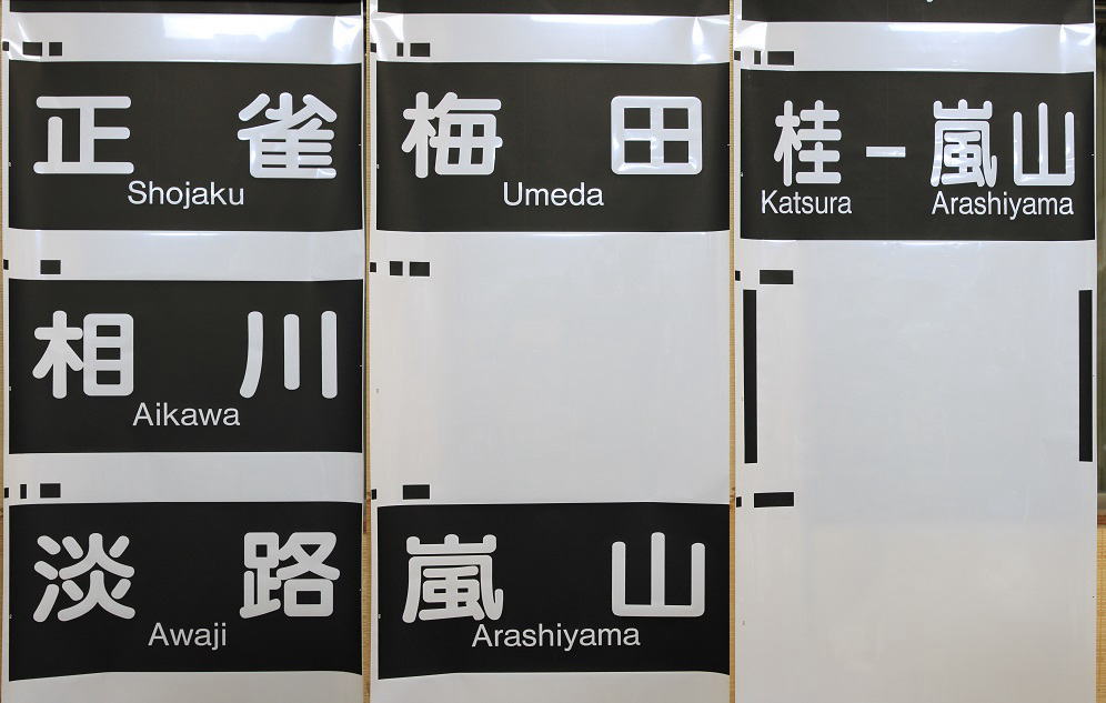 京都線5300系・8300系後期型の正面に装備される行先幕。縦幅が広くなっているタイプ。