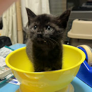 真っ黒で愛嬌たっぷりのお女の子です。元気いっぱいで逃げ足も早いです。抱っこが好きで甘えん坊になりそうです。 谷