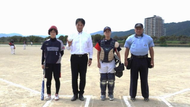 今年は、初めて亀岡市営月読橋球技場することとなり、新設されたトイレや会場駐車場舗装整備などを記念し、亀岡市長桂川孝裕様にご来賓いただきファーストピッチセレモニーを行いました。