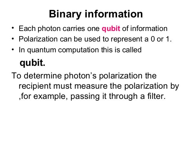 So they often use the time-bin or light phase-encoding where the early-arriving light pulse (= corresponding to a bit = 0 ) and the late-arriving light pulse (= a bit = 1 ) are used as carriers of quantum information.